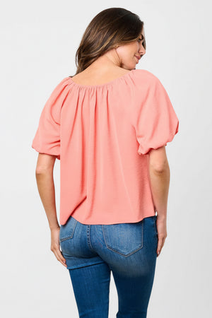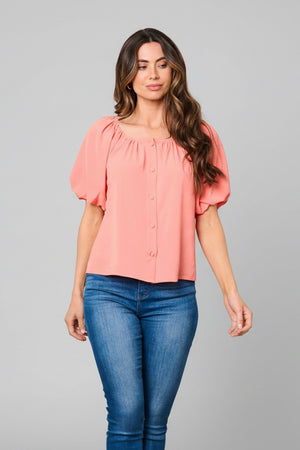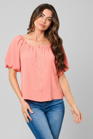 PEACHY MUSE SHORT PUFF SLEEVE BUTTON DOWN BLOUSE