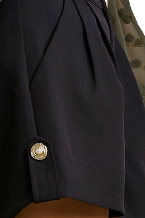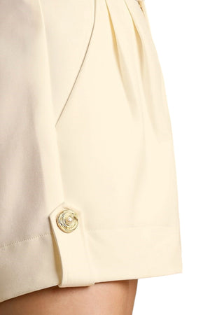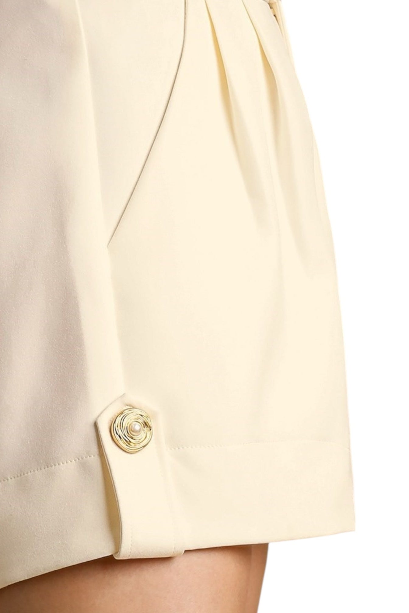 Step into style with our Pleated Tailored Studio Black and Ivory Vogue Wide Leg Button/Zip Front Shorts at Mandalay And Company. Featuring chic side buttons and practical pockets, these shorts blend fashion and functionality. The wide-leg cut offers a flattering silhouette for any occasion. Whether for brunch or a casual outing, these shorts ensure you look fabulous. Shop now to elevate your wardrobe!