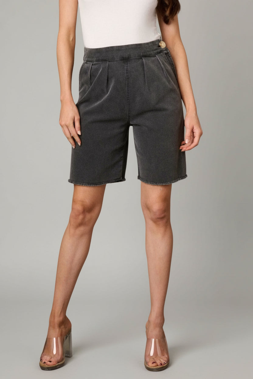 RAW EDGE BLACK WASHED POCKETS DENIM SHORTS