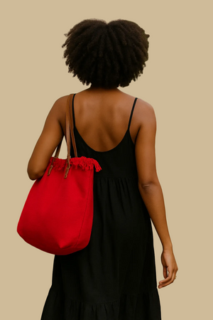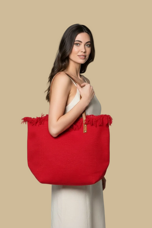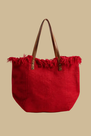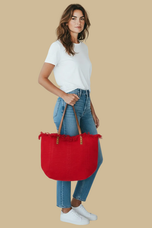 SCARLET FRINGE RED CANVAS TOTE BAG
