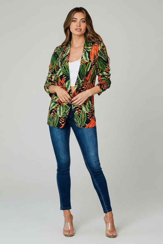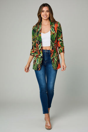 JUNGLE MUSE FLORAL OPEN FORNT 3/4 SLEEVE BLAZER