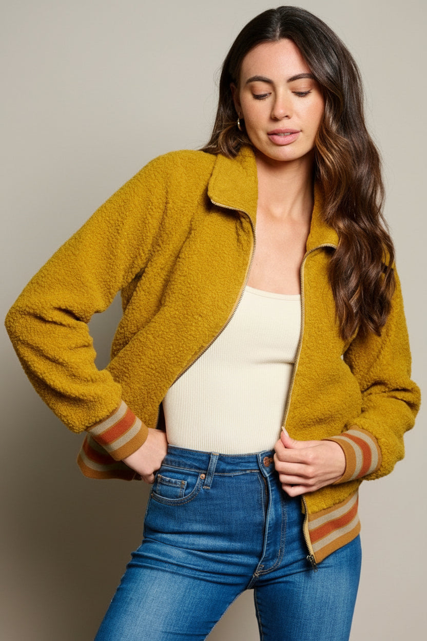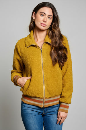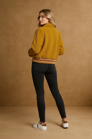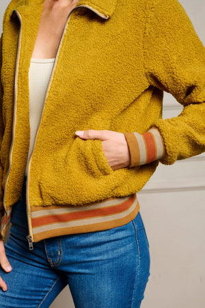 Retro Honey Sherpa Bomber Jacket