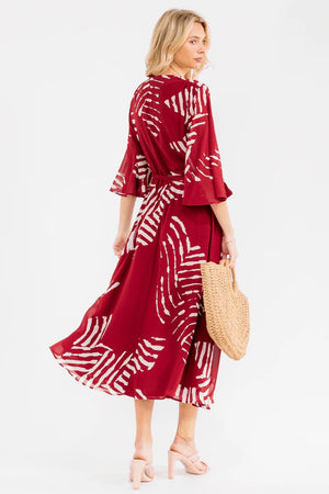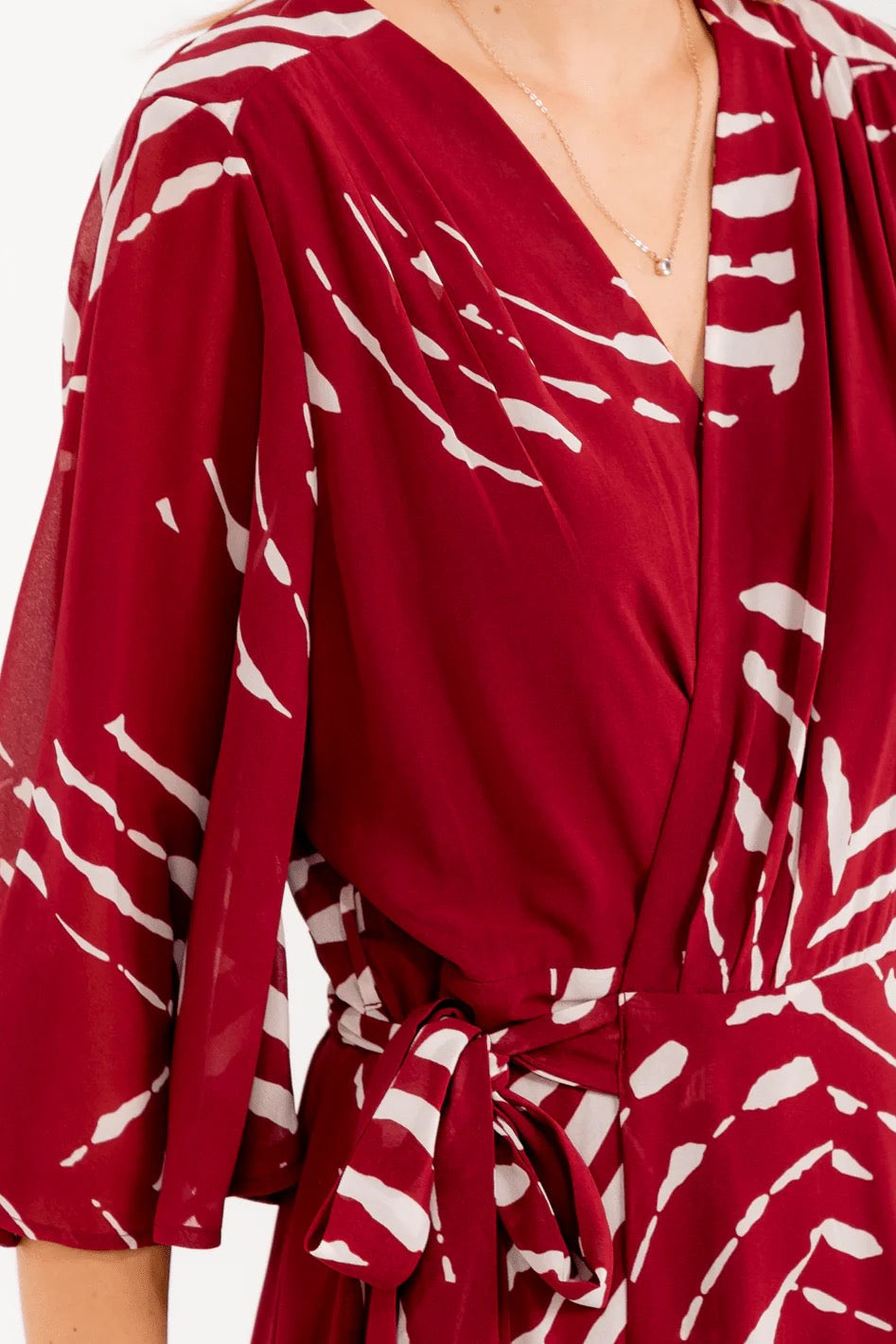 Escape to sun-soaked elegance with the Sangria Shores Wrap Midi Dress. This versatile wrap design flatters every figure while the flowing midi length offers sophisticated coverage for any occasion. Rich sangria tones evoke warmth and confidence, whether you're heading to brunch, a garden party, or an evening out. The adjustable wrap closure lets you customize the fit to perfection, while the breathable fabric keeps you comfortable all day long. Effortlessly chic and endlessly wearable, this dress transitions seamlessly from season to season
