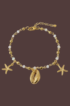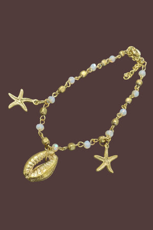 Elevate your beach-ready look with our Gold Shell and Star Fish Anklet from Mandalay And Company. This exquisite piece blends natural seashell elements with refined gold accents, perfect for adding a touch of elegance to any outfit. Our commitment to quality ensures this anklet is both durable and stylish, making it a must-have for your accessory collection. Shop with us and experience the dedication and craftsmanship that define Mandalay And Company's offerings.