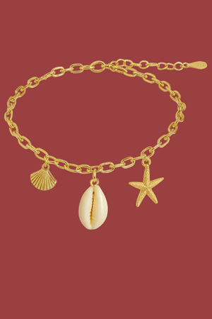 Add a touch of the sea to your look with our stunning Sachi Gold Shell and Star Fish Anklet! Featuring intricate details of starfish and shells, this gold anklet will make you feel like a beach goddess. Perfect for any occasion, it's a must-have accessory for all the ocean lovers out there!
