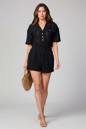 SOHO BREEZE SHORT SLEEVE KNITTED HALF BUTTON ROMPER