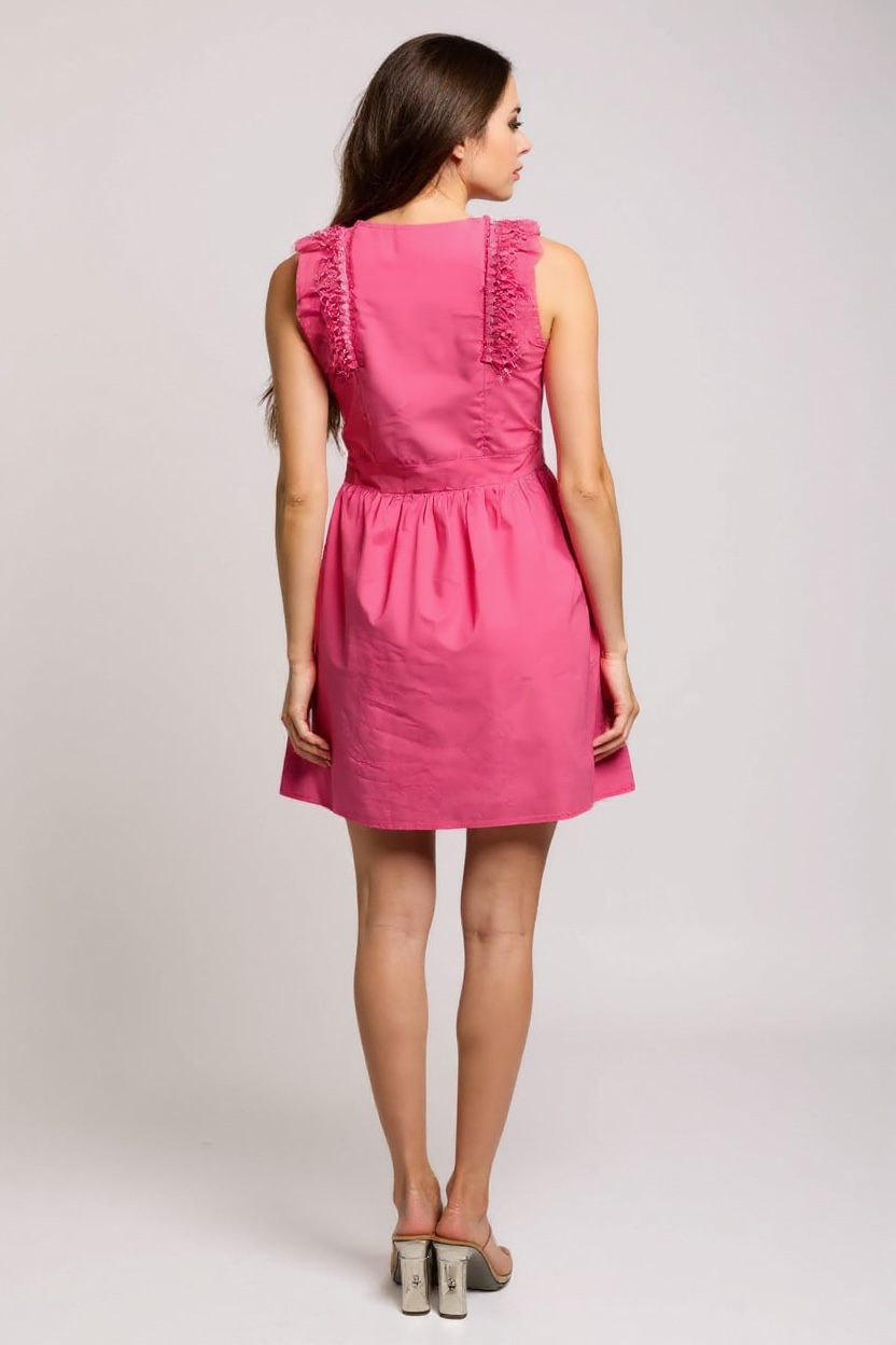 Experience the elegance of the Sleeveless Ruffle V-Neck Fit & Flare Mini Dress at Mandalay And Company. Delicate ruffles highlight the V-neckline, adding romance. The fit & flare design flatters any silhouette. Crafted with care, this dress epitomizes quality and style. Make a statement with Mandalay And Company—fashion that exudes confidence and sophistication.