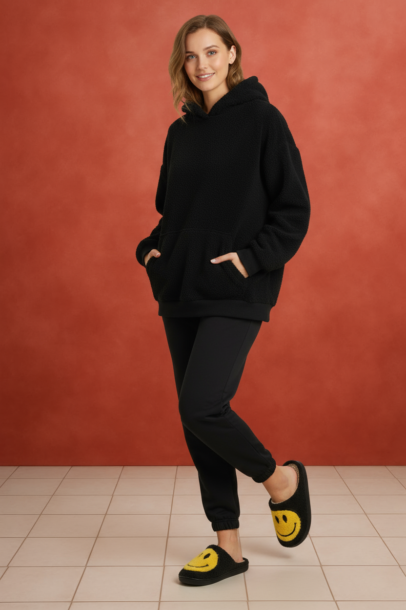 Smiley Face Terry Cloth Fuzzy Sherpa Fleece Slippers