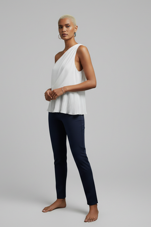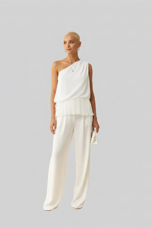 The Solstice Pleated One Shoulder Top combines sleek design with refined detail. Featuring delicate pleats and a graceful one-shoulder cut, this top offers a polished and contemporary look ideal for sophisticated events or stylish everyday wear. Its elegant silhouette enhances your presence with understated charm.