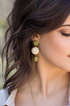 Handmade Raffia, Cotton, Bead and Wood Earrings