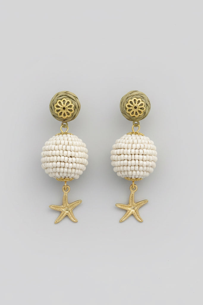 Handmade Raffia, Cotton, Bead and Wood Earrings