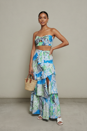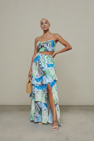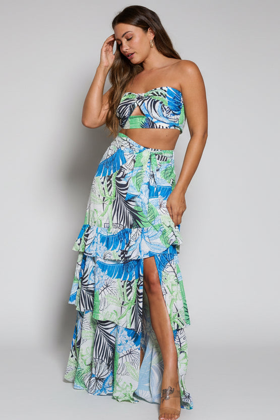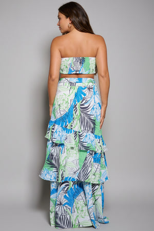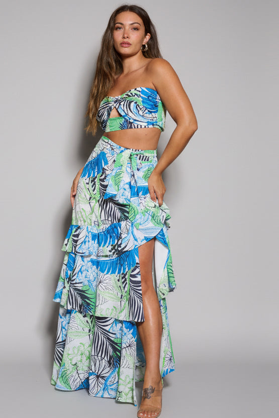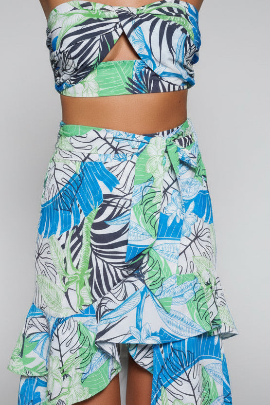 TROPICAL FOLIAGE CROP TOP & RUFFLE SKIRT 2 PC SET