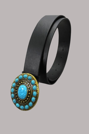 A beautiful western crafted with turquoise embedded conchos, this belt has a bold side to it compliments anything you wear dresses or jeans.