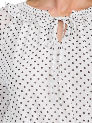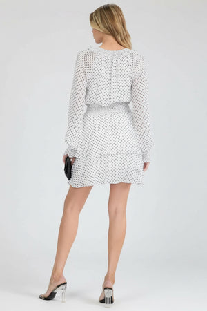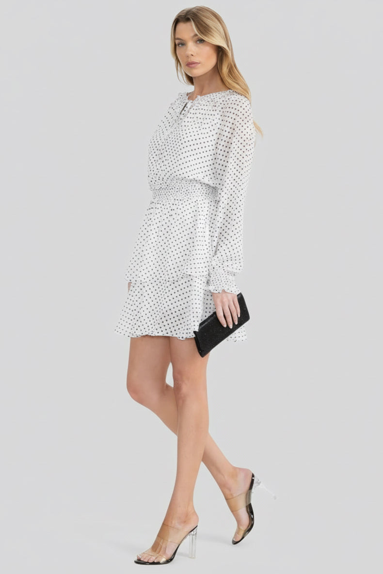 BLACK & WHITE PLOKA DOT SMOCK WAIST FIT & FLARE MINI DRESS